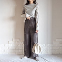 下半身カバーを ストンと叶えるプリーツパンツ 無理しない シンプル母コーデ